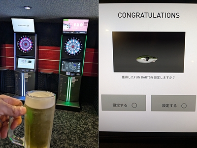足湯から徒歩1分のカラオケ湯CLUBに開店に合わせて入り、会員登録を済ませ2Fで投げで「河豚」を捕獲しました(^^)v これにて、ご当地ファンダーツ収集の旅第3弾のミッションはコンプリートです!