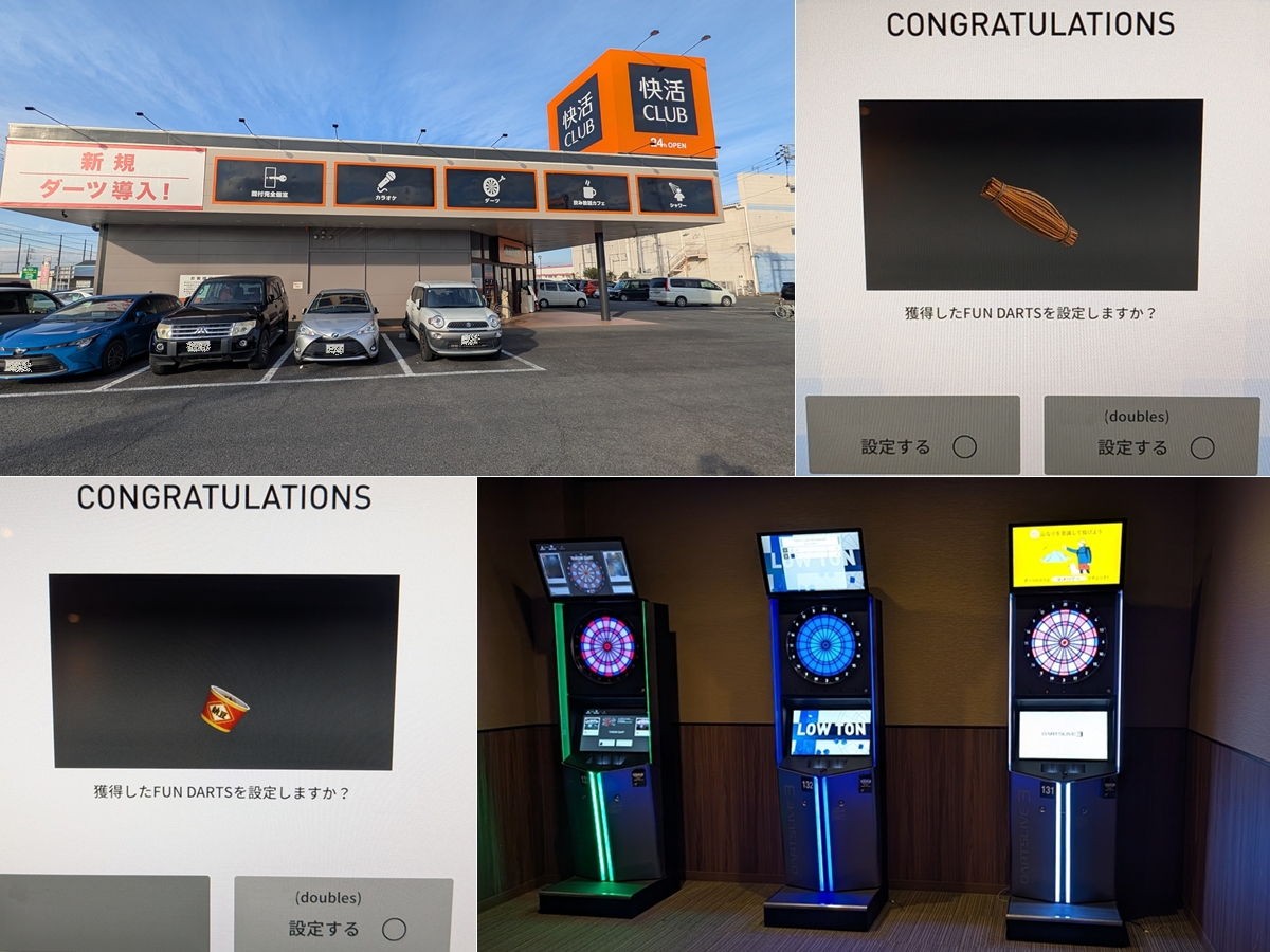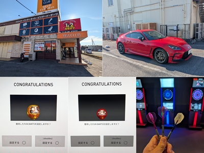 道中渋滞はなく(圏央道では制限速度以下でトラック同士の時間のかかる追い越しにイラっとした事も多々ありましたが)順調に走り、東名→圏央道→関越道東松山out→一般道経由で「快活CLUB 407号太田店」に11:20到着。平日昼前の時間でもダーツライブ3は5台中4台が埋まっていましたが、残り1台を確保して金ダルマとお土産の赤ダルマを無事Getしました!
