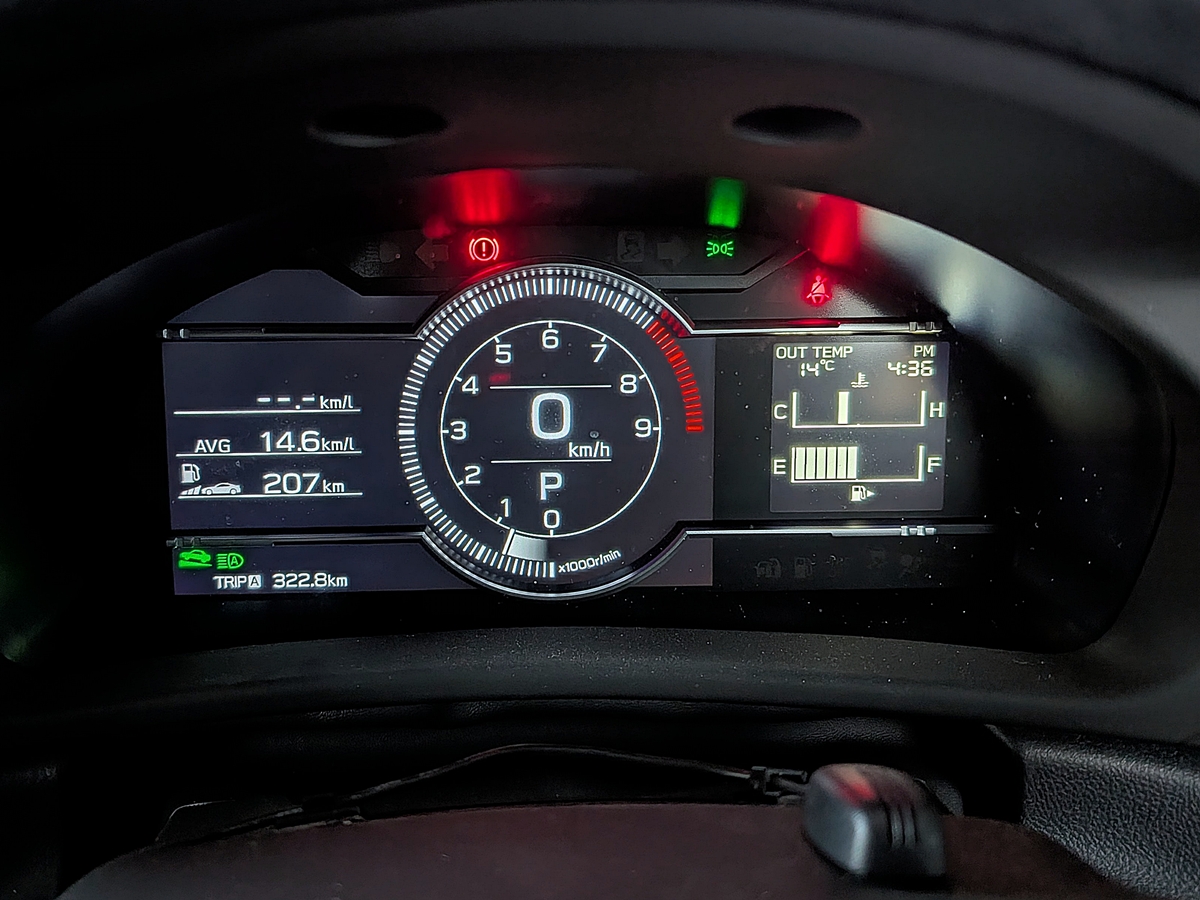 本日の走行距離322.8km、平均燃費14.6km/L。